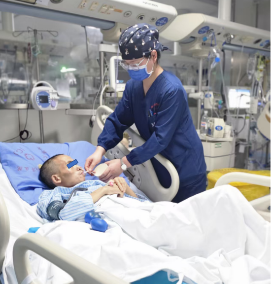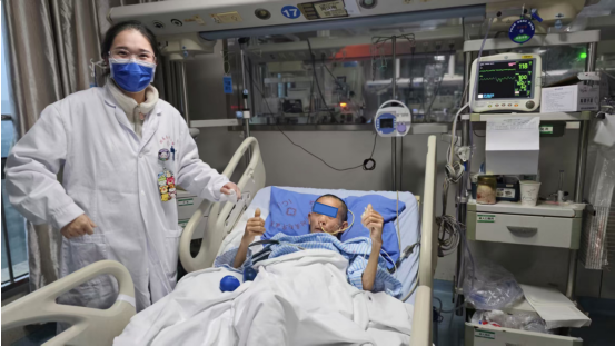 救治过程中,医疗团队发现患者为低保贫困户且无直系亲属,突如其来的重病对患者家庭来说更是雪上加霜。医院始终秉持“生命至上”原则,在全力开展医疗救治的同时,医护人员自发承担起患者的日常照护工作——24小时守护病床旁,精细监测生命体征,严格执行翻身、拍背、气道管理等护理操作。在急危重症医学部副主任甘燕青、丁艺璇医师和全体医护人员不懈努力下,患者的感染逐渐得到控制,休克纠正,衰竭的器官功能开始缓慢恢复。